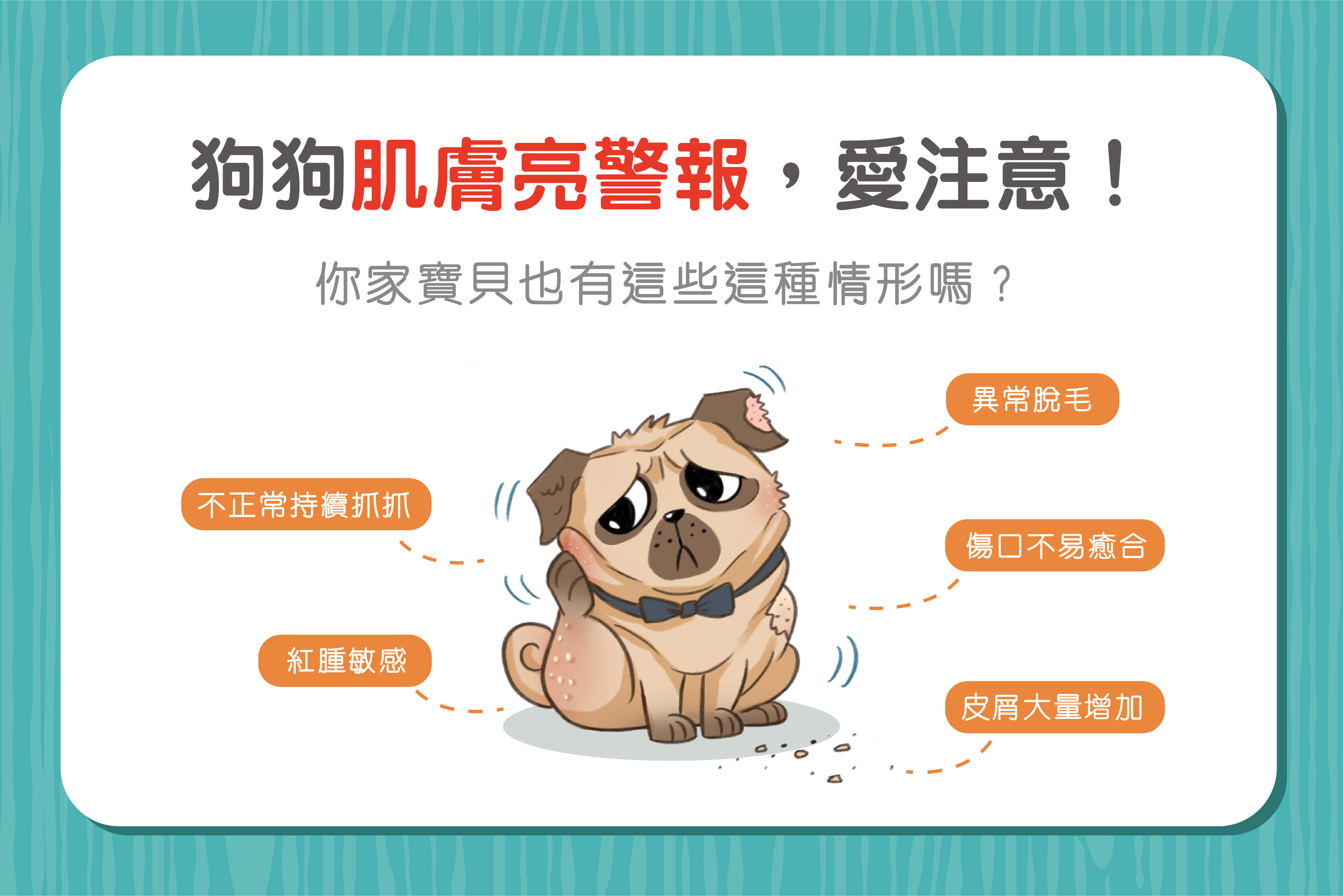 紅腫敏感、不正常持續抓抓、傷口不易癒合