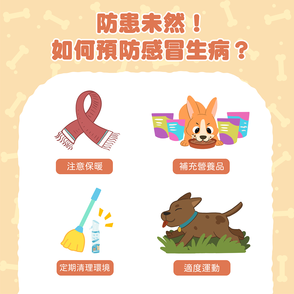 居家環境其實藏著許多細菌,定期清掃環境及毛孩用品,可以降低生病感冒的機率。